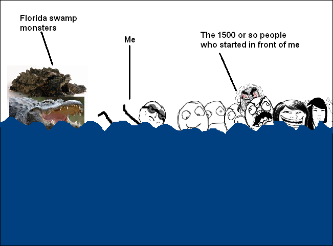 - Race day: Swim well, bike OK, attempt to suicide myself on the run